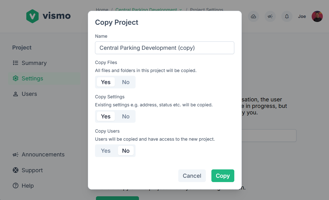 Projects can now be copied or transferred to a new owner or organisation. Whether you need to hand over a project or simply want to keep your own copy, you can do it all under Project Settings.